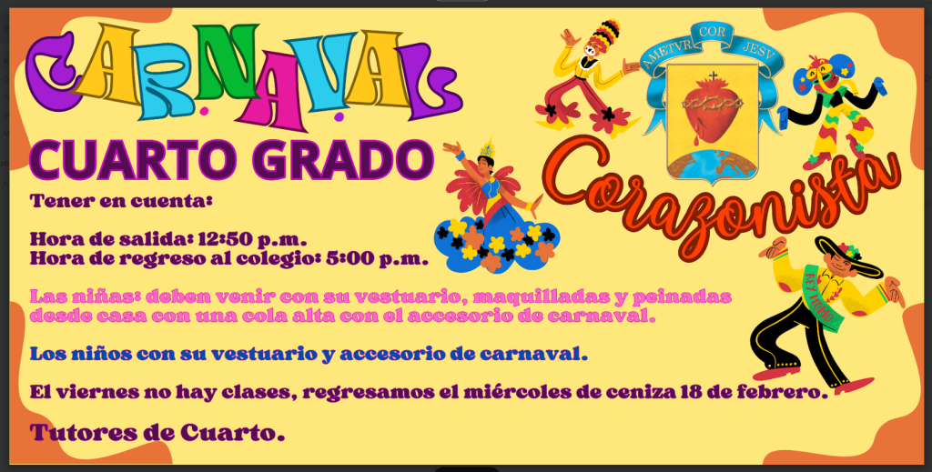 - Carnavalito 12 de febrero. (Salida de los estudiantes 12:50 m y volvemos a las 5:00 pm)
