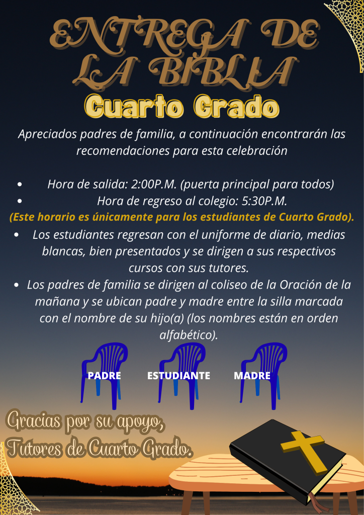 Leer información en la imagen. – (los padres deben traer un bolígrafo negro para la ceremonia).